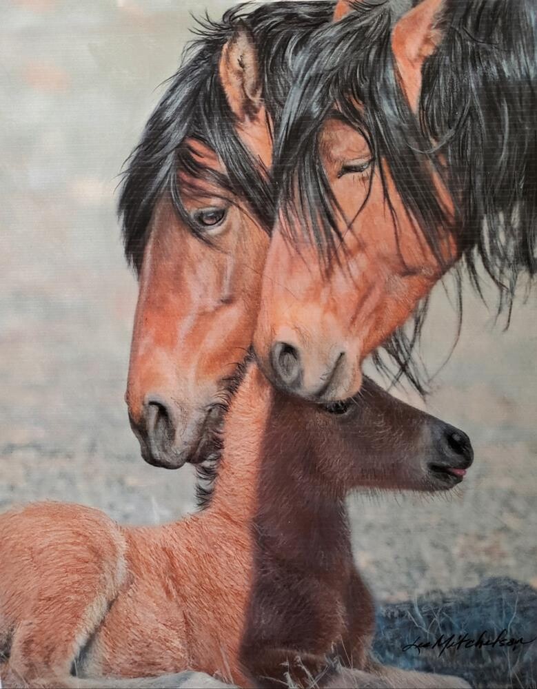 Do you see in the shadow, that this little fella has his lil' tongue sticking out? And I have seen several photos of him and it is still out! So stinkin' cute! I was talking to my daughter about little foal tongues and how there is nothing more tender. I remember getting to touch one and noticed how there was no texture, just silky smooth, as brand new as anything in nature could be. Very very sweet. This is the colt, Neptune. Already nicknamed Neppie of course. And he is here with his mother, Gabby, she is in the back, and with them, his father, Willie. Willie and Gabby look incredibly alike. Gabby has the most glorious mane in the Pine Nut Mountains, in my opinion. And Willie, is the stallion who is smaller than every single other stallion around. He is not aware of this. He never shows that he feels short-changed in the least. He is loved and respected by all. I would say he is doing quite nicely for himself. Not many babies are born in the Pine Nuts, because there is a 97% effective birth control program for them. And it is done to keep the over-all number of horses low enough to be able to keep the government from coming in and committing the horror of rounding up our precious wild ones.