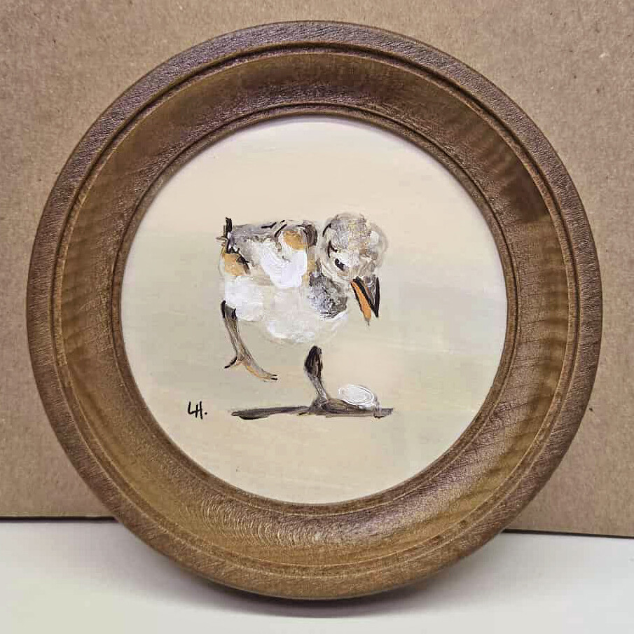 Cute little Oystercatcher chick learning to hunt for himself. This is a 4"x4" artwork in a just under a 5" frame Cute little Oystercatcher chick learning to hunt for himself. This is a 4"x4" artwork in a just under a 5" frame |