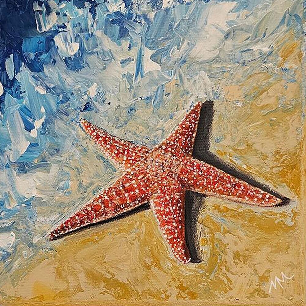 Starfish in a sea of paletted beach. Edges are painted as an abstract extension of the image, ready to hang. Starfish in a sea of paletted beach. Edges are painted as an abstract extension of the image, ready to hang. |