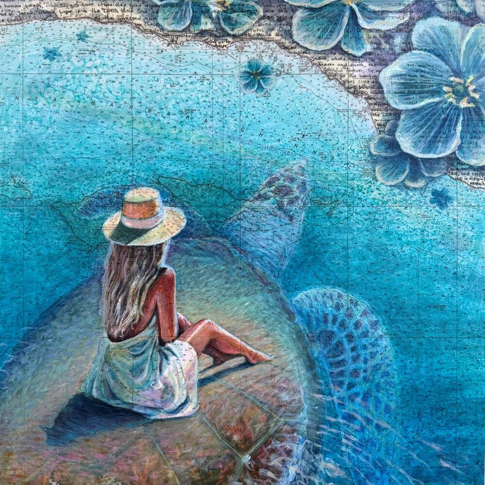 This is another painting from the “Unbound joy” series. The symbolism and the surreal concept of this scene touches on deep meaning of radical changes we all go through in life. The goal is to enjoy and trust the process. Navigation chart collage, acrylic inks, script writing, acrylic and oil painting were all used in the process. Light weight wood panel (1.5” in depth) makes it easy to transport and hang on a wall. This is another painting from the “Unbound joy” series. The symbolism and the surreal concept of this scene touches on deep meaning of radical changes we all go through in life. The goal is to enjoy and trust the process. Navigation chart collage, acrylic inks, script writing, acrylic and oil painting were all used in the process. Light weight wood panel (1.5” in depth) makes it easy to transport and hang on a wall. |