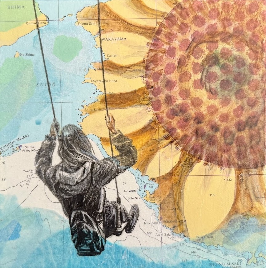 This artwork is a part of a series of paintings under the same title. They all celebrate perseverance in the midst of radical life changes. The images call for embracing of the unknown. A swing symbolizes the concept of letting go off control. Navigation charts used in these pieces point to migration- the radical change that the artist has experienced. This artwork is a part of a series of paintings under the same title. They all celebrate perseverance in the midst of radical life changes. The images call for embracing of the unknown. A swing symbolizes the concept of letting go off control. Navigation charts used in these pieces point to migration- the radical change that the artist has experienced. |