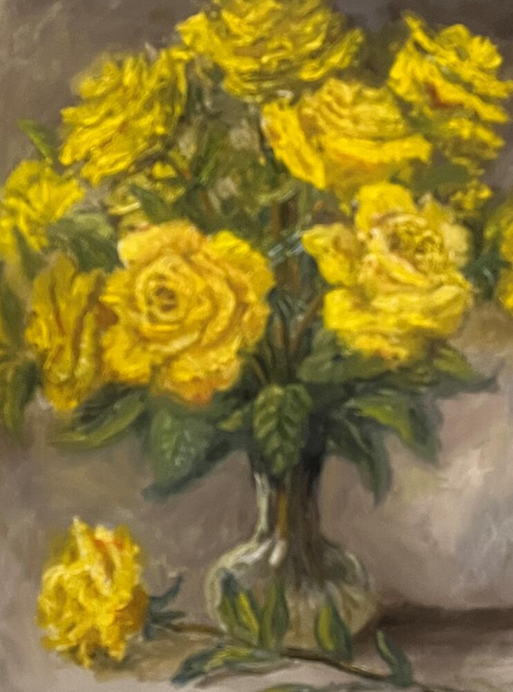 My husband gets me yellow roses every birthday since yellow is my favorite color. This year's roses were especially pretty! I did this painting in thick oil paint on a painted edge canvas. It could be hung with a frame or without. I ship for free in the US. Thanks for looking! My husband gets me yellow roses every birthday since yellow is my favorite color. This year's roses were especially pretty! I did this painting in thick oil paint on a painted edge canvas. It could be hung with a frame or without. I ship for free in the US. Thanks for looking! |