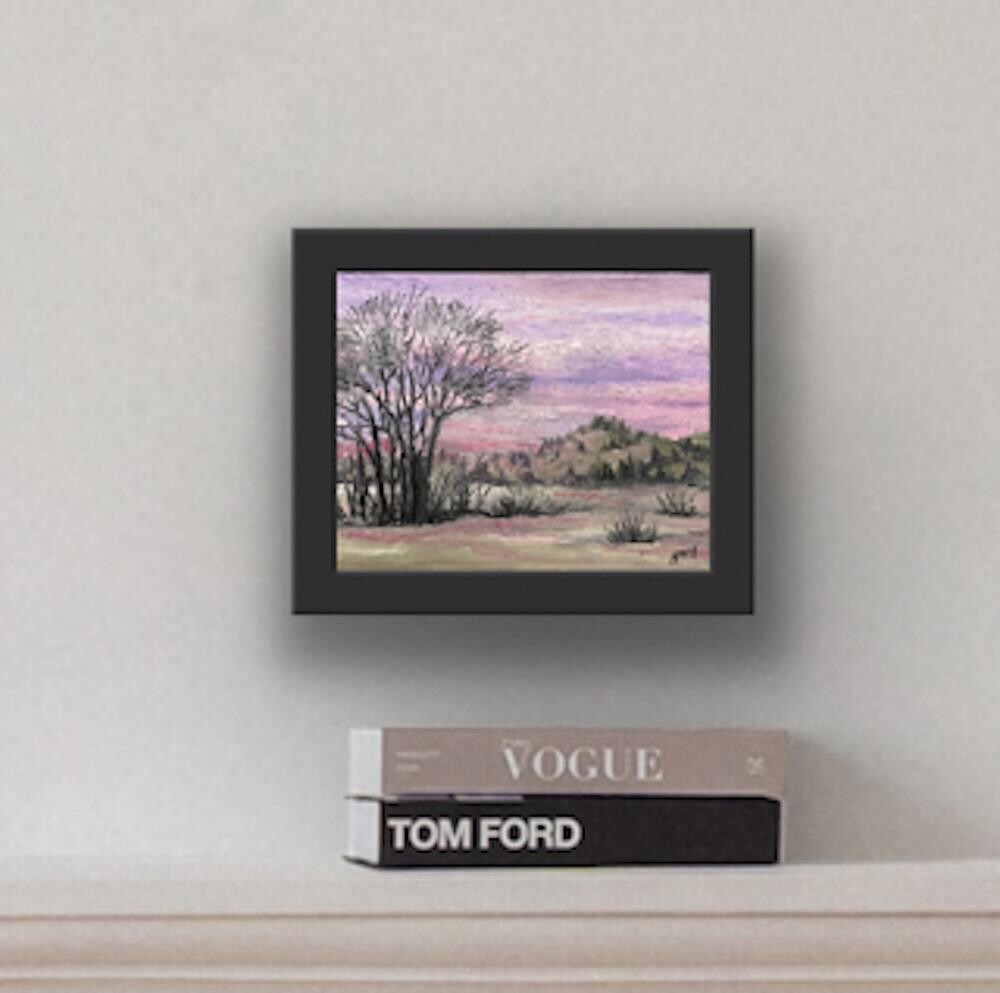 I saw this scene on a recent trip to the Black Hills. Even though it is winter there was no snow on the ground and the pink sunset cast a glow on the bare winter ground. I did this painting in thick oil paint on a 10x8 masonite board. I like using thick oil paint as it gives paintings a luscious texture that can’t be replicated in a print. This painting is unframed but could easily be framed by placing it in a standard photo frame with the glass removed as shown in the second photo. Shipped free with USPS Ground Advantage shipping within one day. Thanks for looking! I saw this scene on a recent trip to the Black Hills. Even though it is winter there was no snow on the ground and the pink sunset cast a glow on the bare winter ground. I did this painting in thick oil paint on a 10x8 masonite board. I like using thick oil paint as it gives paintings a luscious texture that can’t be replicated in a print. This painting is unframed but could easily be framed by placing it in a standard photo frame with the glass removed as shown in the second photo. Shipped free with USPS Ground Advantage shipping within one day. Thanks for looking! |