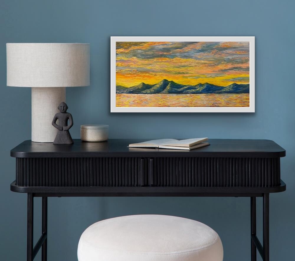 I saw this dramatic sunset against the Missouri River Hills. I did it on a 20x10 painted edge canvas so it is ready to hang as is or it could be framed as shown in the second photo. I called this painting"Impasto Sunset" because it is painted with very thick oil paint. I ship for free in the US. thanks for looking! I saw this dramatic sunset against the Missouri River Hills. I did it on a 20x10 painted edge canvas so it is ready to hang as is or it could be framed as shown in the second photo. I called this painting"Impasto Sunset" because it is painted with very thick oil paint. I ship for free in the US. thanks for looking! |