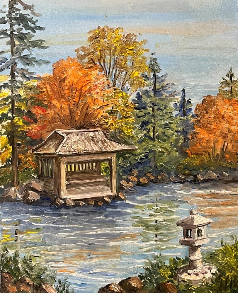 I recently visited the Anderson Japanese Garden in Rockford, Illinois and saw this lovely scene! What a wonderful place to relax and soak in the beauty of nature!! I did this painting in thick oil paint on a 10x8 masonite board. I like using thick oil paint as it gives paintings a luscious texture that can’t be replicated in a print. This painting is unframed but could easily be framed by placing it in a standard photo frame with the glass removed as shown in the second photo. Shipped free with USPS Ground Advantage shipping within one day. Thanks for looking! I recently visited the Anderson Japanese Garden in Rockford, Illinois and saw this lovely scene! What a wonderful place to relax and soak in the beauty of nature!! I did this painting in thick oil paint on a 10x8 masonite board. I like using thick oil paint as it gives paintings a luscious texture that can’t be replicated in a print. This painting is unframed but could easily be framed by placing it in a standard photo frame with the glass removed as shown in the second photo. Shipped free with USPS Ground Advantage shipping within one day. Thanks for looking! |