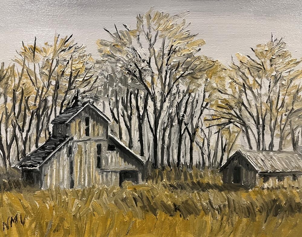 Everything about this scene was melancholy-the old, weathered barn, the gray sky, the bare trees! This is the time of the year when the lovely fall leaves have gone but we are not yet blessed with the beauty of snow!! I did this painting in thick oil paint on a 10x8 masonite board. I like using thick oil paint as it gives paintings a luscious texture that can’t be replicated in a print. This painting is unframed but could easily be framed by placing it in a standard photo frame with the glass removed as shown in the second photo. Shipped free with USPS Ground Advantage shipping within one day. Thanks for looking! Everything about this scene was melancholy-the old, weathered barn, the gray sky, the bare trees! This is the time of the year when the lovely fall leaves have gone but we are not yet blessed with the beauty of snow!! I did this painting in thick oil paint on a 10x8 masonite board. I like using thick oil paint as it gives paintings a luscious texture that can’t be replicated in a print. This painting is unframed but could easily be framed by placing it in a standard photo frame with the glass removed as shown in the second photo. Shipped free with USPS Ground Advantage shipping within one day. Thanks for looking! |