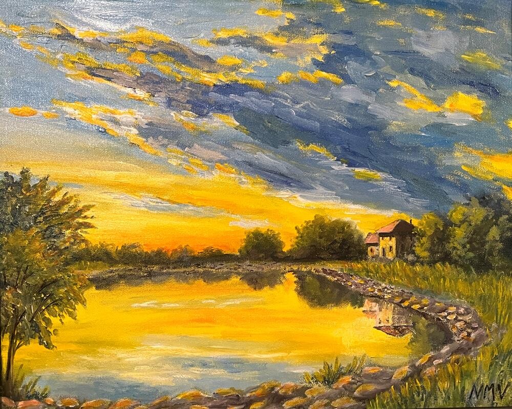 This was the dramatic sunrise that I saw on a nearby lake! I did this painting in thick paint on an 16x20 inch stretched canvas. I have shown in framed in the second photo and I will send it framed if desired for an additional $20. Please email/message if you would like me to add the frame to your purchase. Thanks for looking! This was the dramatic sunrise that I saw on a nearby lake! I did this painting in thick paint on an 16x20 inch stretched canvas. I have shown in framed in the second photo and I will send it framed if desired for an additional $20. Please email/message if you would like me to add the frame to your purchase. Thanks for looking! |