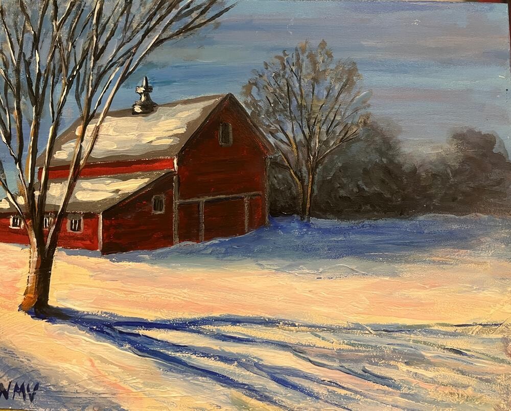 This scene appealed to me- the red barn, of course, but mostly the dramatic blue shadows that the winter tree cast on the snow! I did this painting in thick acrylic paint on a 10x8 in masonite board. I usually paint in oil paint but am experimenting with acrylic and finding that it looks much like oil if I add modeling paste to the paint to give it a thicker consistency. I’ll definitely go back to oil but it’s fun to try something else occasionally! This painting is unframed but could easily be framed by placing it in a standard 10x8 frame with the glass removed. I ship for free in the US. Thanks for looking!! This scene appealed to me- the red barn, of course, but mostly the dramatic blue shadows that the winter tree cast on the snow! I did this painting in thick acrylic paint on a 10x8 in masonite board. I usually paint in oil paint but am experimenting with acrylic and finding that it looks much like oil if I add modeling paste to the paint to give it a thicker consistency. I’ll definitely go back to oil but it’s fun to try something else occasionally! This painting is unframed but could easily be framed by placing it in a standard 10x8 frame with the glass removed. I ship for free in the US. Thanks for looking!! |
