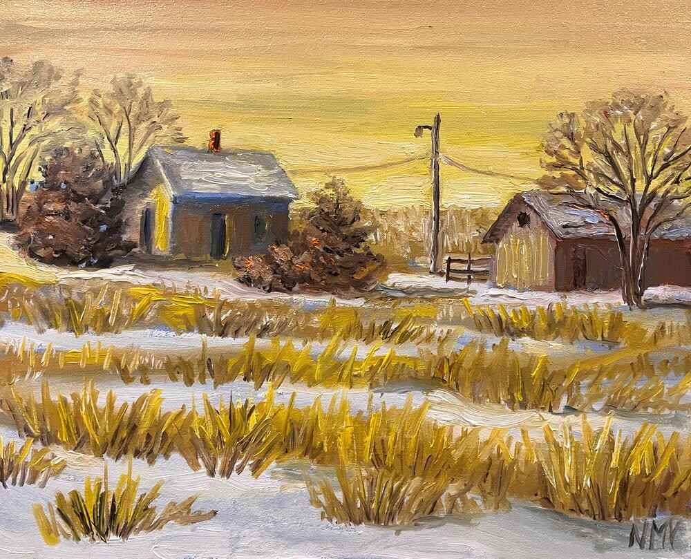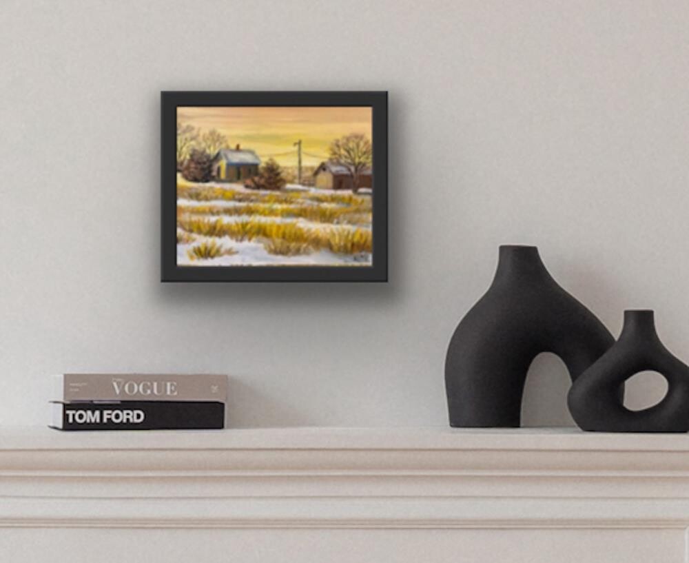 The yellow light of morning and the newly fallen snow added an interesting touch to this simple rural scene! I did this painting in thick oil paint on a 10x8 masonite board. I like using thick oil paint as it gives paintings a luscious texture that can’t be replicated in a print. This painting is unframed but could easily be framed by placing it in a standard photo frame with the glass removed as shown in the second photo. Shipped free with USPS Ground Advantage shipping within one day. Thanks for looking! The yellow light of morning and the newly fallen snow added an interesting touch to this simple rural scene! I did this painting in thick oil paint on a 10x8 masonite board. I like using thick oil paint as it gives paintings a luscious texture that can’t be replicated in a print. This painting is unframed but could easily be framed by placing it in a standard photo frame with the glass removed as shown in the second photo. Shipped free with USPS Ground Advantage shipping within one day. Thanks for looking! |