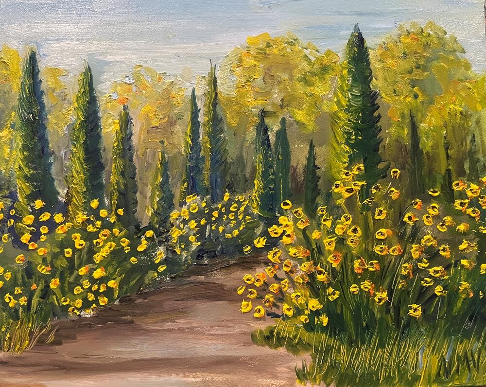 I saw this path lined by sunflowers and tall straight trees near hear lately. I know sunflowers are technically weeds but I do love this time of year with sunflowers everywhere. I did this painting in thick oil paint on a 10x8 masonite board. I like using thick oil paint as it gives paintings a luscious texture that can’t be replicated in a print. This could easily be framed by placing it in a standard photo frame with the glass removed. Shipped free with USPS Ground Advantage shipping within one day. Thanks for looking! I saw this path lined by sunflowers and tall straight trees near hear lately. I know sunflowers are technically weeds but I do love this time of year with sunflowers everywhere. I did this painting in thick oil paint on a 10x8 masonite board. I like using thick oil paint as it gives paintings a luscious texture that can’t be replicated in a print. This could easily be framed by placing it in a standard photo frame with the glass removed. Shipped free with USPS Ground Advantage shipping within one day. Thanks for looking! |