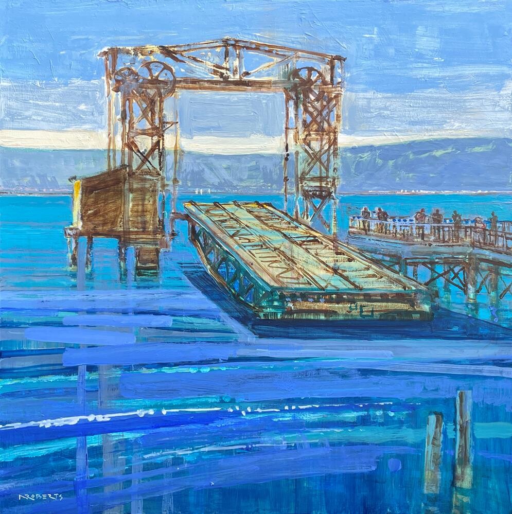 This spot along the Richmond waterfront was once a bustling rail hub where freight cars were loaded onto barges and passengers boarded ferries to cross San Francisco Bay. Now the old dock structures are preserved at the beautiful Miller/Knox Regional Shoreline next to a popular fishing pier. So fun painting this fascinating jumble! Acrylic on Ampersand Gessobord panel, 12" x 12" in a maple floater frame. This spot along the Richmond waterfront was once a bustling rail hub where freight cars were loaded onto barges and passengers boarded ferries to cross San Francisco Bay. Now the old dock structures are preserved at the beautiful Miller/Knox Regional Shoreline next to a popular fishing pier. So fun painting this fascinating jumble! Acrylic on Ampersand Gessobord panel, 12" x 12" in a maple floater frame. |