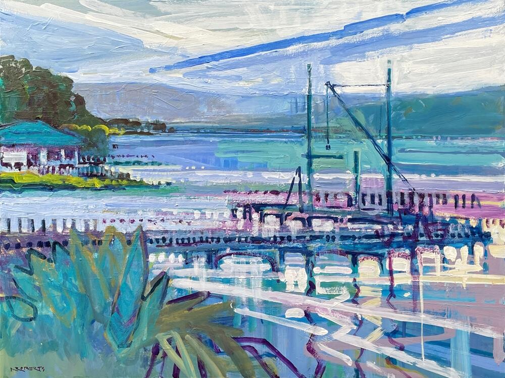 Old boat docks, fishing piers and pilings create a puzzle of patterns along Benicia's shoreline, shifting and sparkling as the tides roll in and out. Acrylic on Ampersand Gessobord panel, 12" x 16" in a maple floater frame. Available for purchase in person or online at Epperson Gallery in Crockett, California. Old boat docks, fishing piers and pilings create a puzzle of patterns along Benicia's shoreline, shifting and sparkling as the tides roll in and out. Acrylic on Ampersand Gessobord panel, 12" x 16" in a maple floater frame. Available for purchase in person or online at Epperson Gallery in Crockett, California. |