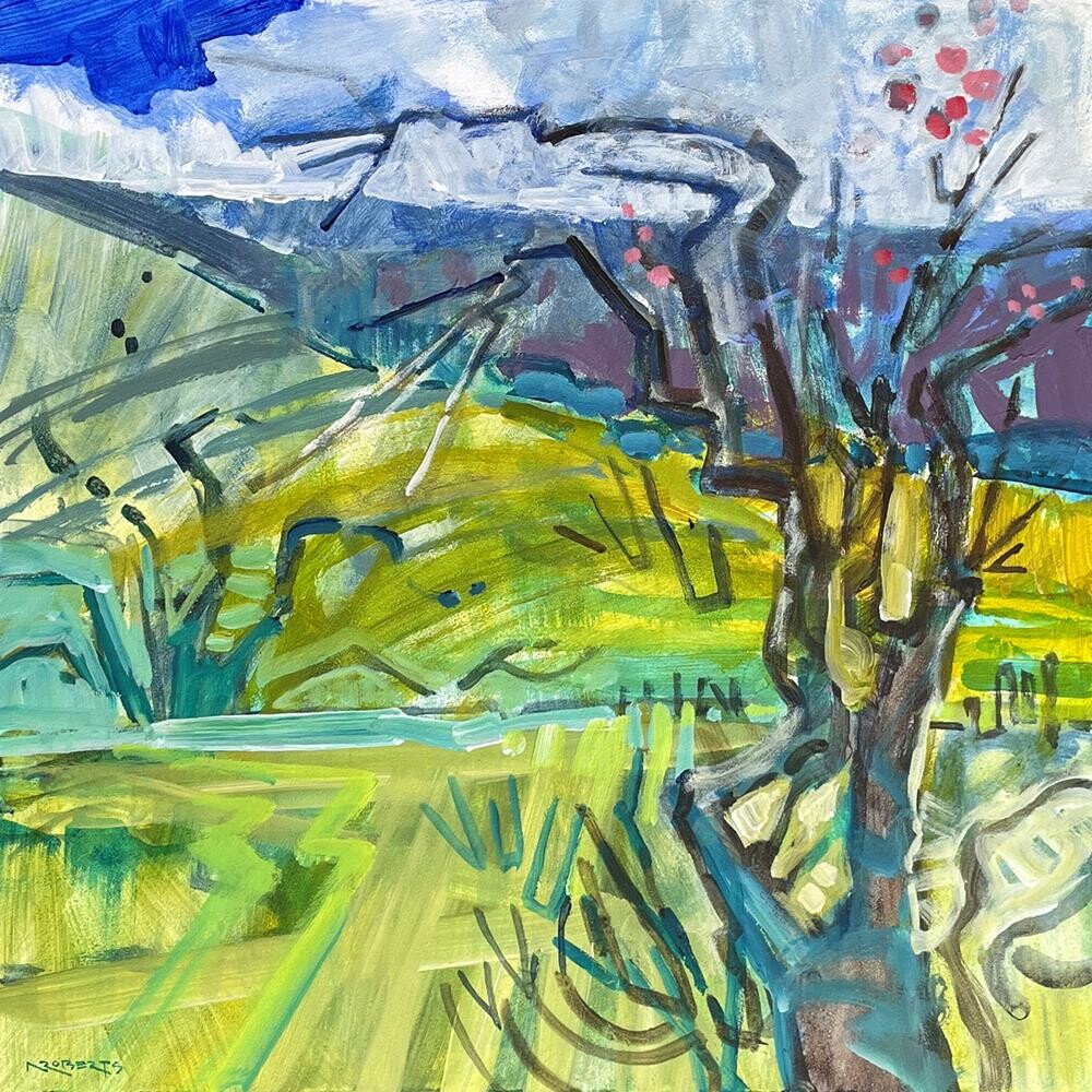 This quiet country road near Black Diamond is one of my favorite spots, always a peaceful getaway. In early spring it's a tapestry of blooming almonds, gnarly oaks and glowing greens. Plein air heaven! Acrylic on Ampersand Gessobord panel, 12" x 12", in a maple floater frame. This quiet country road near Black Diamond is one of my favorite spots, always a peaceful getaway. In early spring it's a tapestry of blooming almonds, gnarly oaks and glowing greens. Plein air heaven! Acrylic on Ampersand Gessobord panel, 12" x 12", in a maple floater frame. |