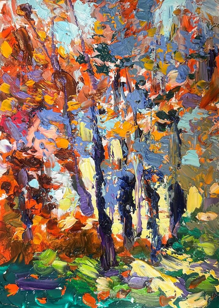 Sunlight weaves through the burnished trees, spilling its glow across the forst floor. Sunlight weaves through the burnished trees, spilling its glow across the forst floor. |