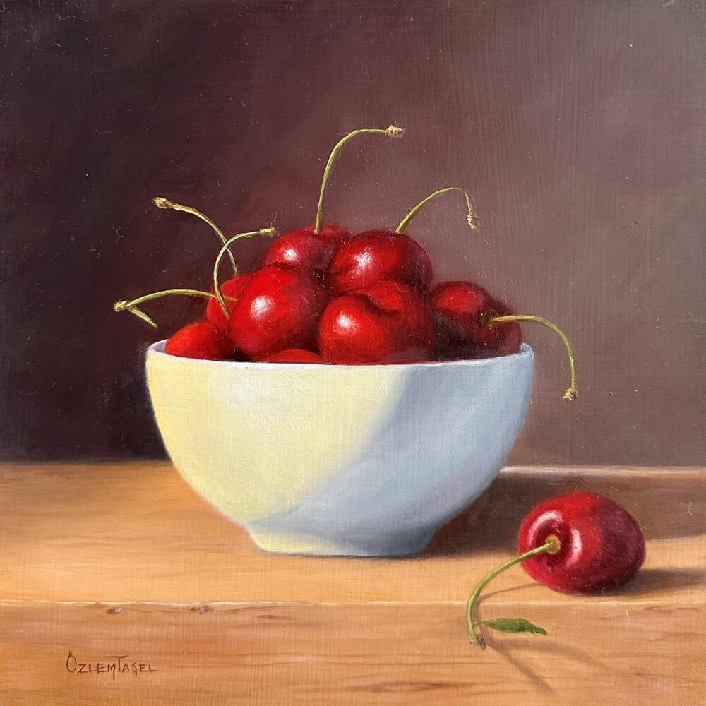 For the Love of Cherries, I aimed to capture the simplicity and elegance of a small white bowl brimming with vibrant, red cherries. The rich, glossy cherries contrast beautifully with the bowl, creating a striking visual appeal. With meticulous brushstrokes, I sought to bring out the natural sheen of the cherries, making them appear almost lifelike. Through this composition, I wanted to exude a sense of freshness and abundance, inviting viewers to appreciate the beauty in everyday objects.