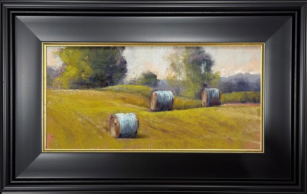 "Fields at Rest", a pastel painting capturing the warmth of late summer fields, where freshly rolled hay bales rest beneath soft light. Painting is 6" x 12". It is sold framed. Framed size is 11 x 17. FREE shipping within the US 48! "Fields at Rest", a pastel painting capturing the warmth of late summer fields, where freshly rolled hay bales rest beneath soft light. Painting is 6" x 12". It is sold framed. Framed size is 11 x 17. FREE shipping within the US 48! |