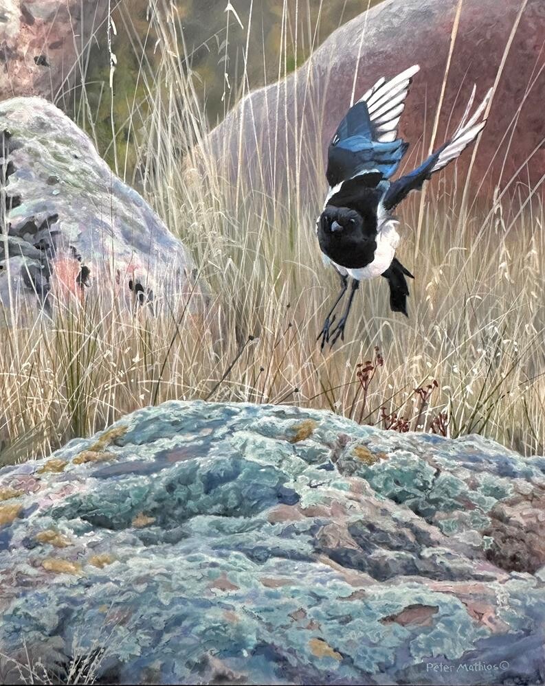 Available at Settler's West Gallery - February 14th - American Miniatures This piece was inspired by a moment in the Rockies, where the subtly colorful, lichen-covered rocks created a magical juxtaposition to the magpie’s bold black and white plumage. I was drawn to the contrast—the glossy sheen of the feathers against the weathered textures of the meadow stones. Available at Settler's West Gallery - February 14th - American Miniatures This piece was inspired by a moment in the Rockies, where the subtly colorful, lichen-covered rocks created a magical juxtaposition to the magpie’s bold black and white plumage. I was drawn to the contrast—the glossy sheen of the feathers against the weathered textures of the meadow stones. |