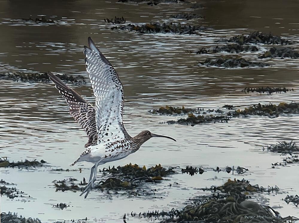 Available at Settler's West Gallery - February 14th - American Miniatures This painting captures a quiet moment of lift-off along the shoreline of Islay, inspired by a European curlew I watched rise from the tidal edge near the Lagavulin Distillery. I hadn’t even noticed the bird at first—it blended so naturally into the shallows as it picked for food with its long, curved bill. When it finally took flight, its patterned wings and the rippling, seaweed-lined water created a harmony I knew I wanted to paint. Available at Settler's West Gallery - February 14th - American Miniatures This painting captures a quiet moment of lift-off along the shoreline of Islay, inspired by a European curlew I watched rise from the tidal edge near the Lagavulin Distillery. I hadn’t even noticed the bird at first—it blended so naturally into the shallows as it picked for food with its long, curved bill. When it finally took flight, its patterned wings and the rippling, seaweed-lined water created a harmony I knew I wanted to paint. |