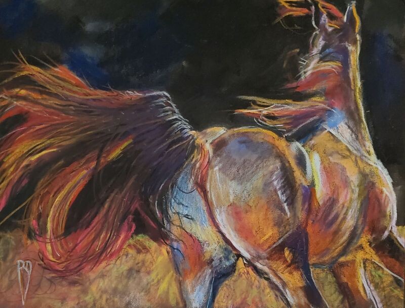 This piece is done in pastels and colored pencils. I like working with these two mediums together...the colored pencil is good for details while the pastel is good for expression and movement. They work well together. This piece is done in pastels and colored pencils. I like working with these two mediums together...the colored pencil is good for details while the pastel is good for expression and movement. They work well together. |