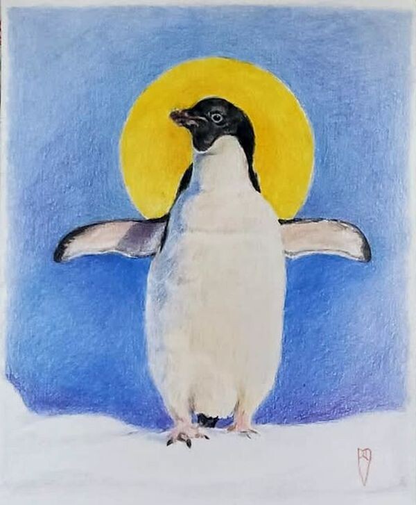 Only 6x7 inches this little penguin was done in colored pencil on hot press watercolor paper. It is unframed and will arrive carefully packed and ready for the frame of your choice. Only 6x7 inches this little penguin was done in colored pencil on hot press watercolor paper. It is unframed and will arrive carefully packed and ready for the frame of your choice. |