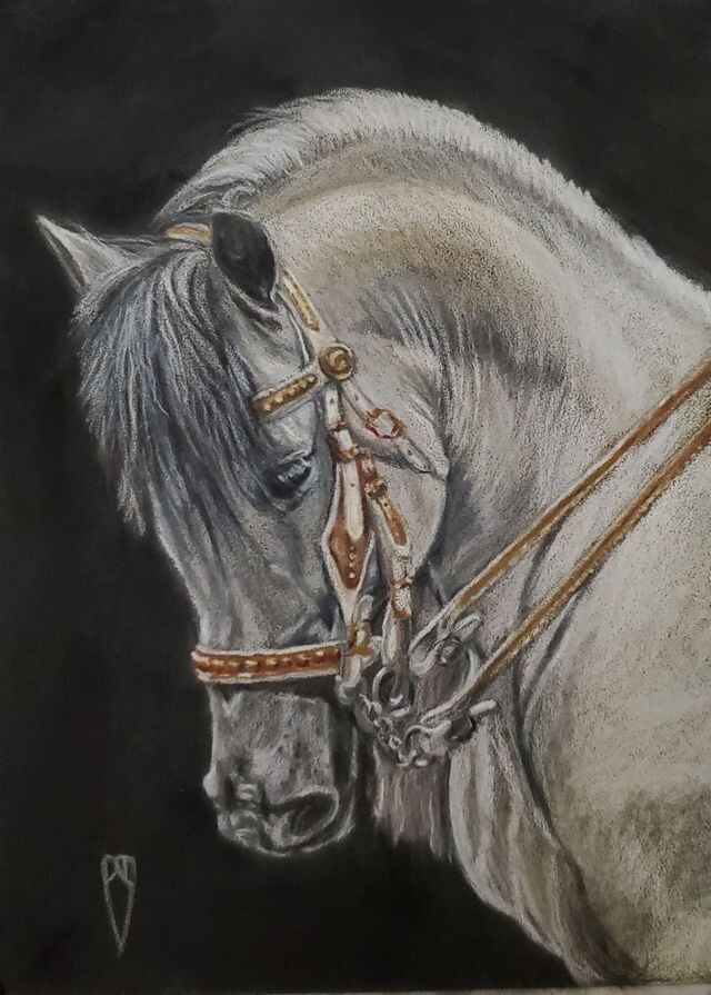This drawing is colored pencil on pastelmat. It always amazes me how many colors are actually in a white horse. This is 9.5x7 This drawing is colored pencil on pastelmat. It always amazes me how many colors are actually in a white horse. This is 9.5x7 |