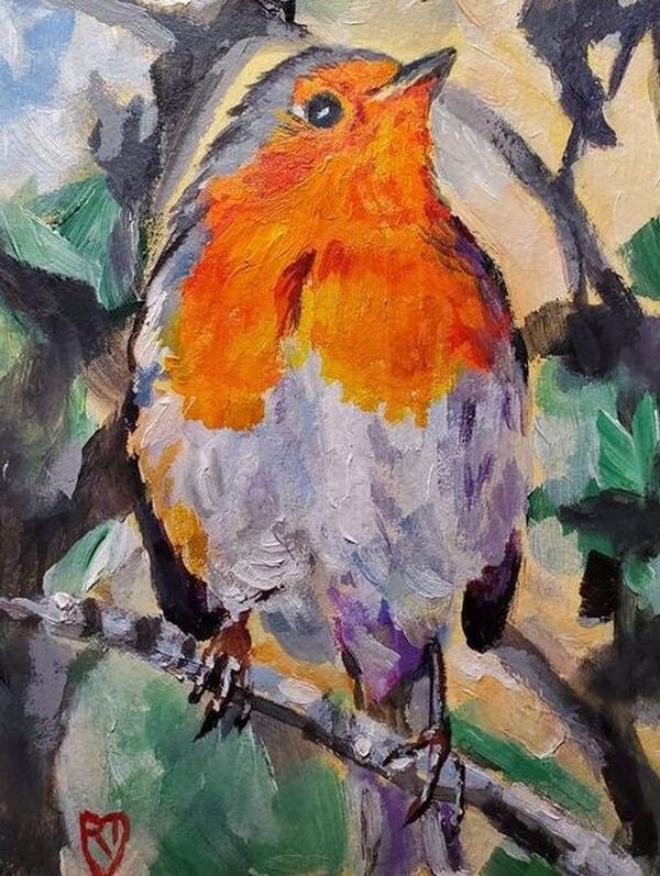 This sweet little robin is painted with acrylics on watercolor paper. It is 5x7 inches and will come mounted on board and ready to be framed.