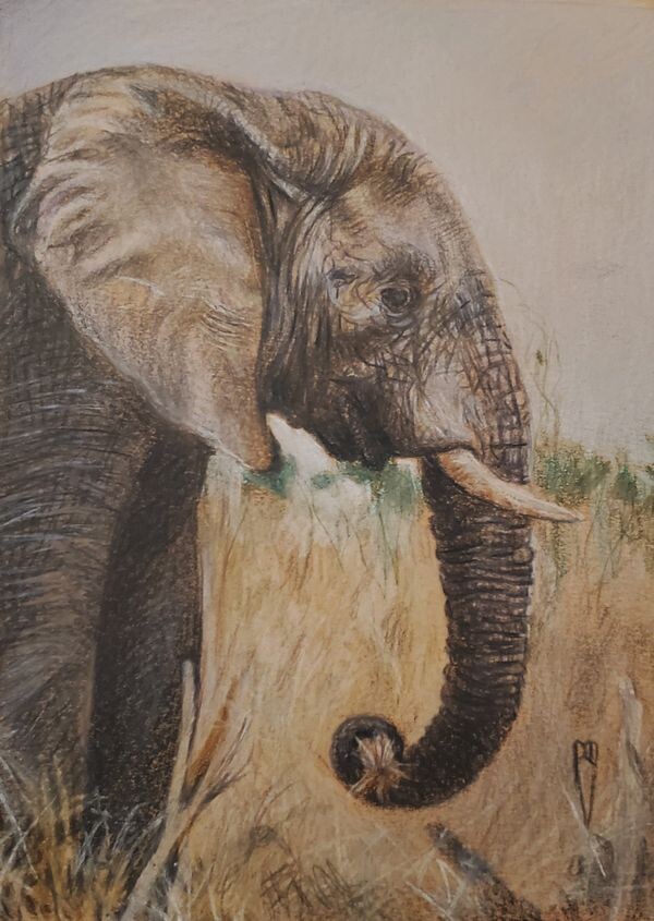 I got the reference for this elephant from Pixabay. When I was in high school we had a assignment to do illustrations for a children's book. I chose The Sun Shone on the Elephant by Gwyneth Mamlok and did very simple and cartoonish illustrations. I wish I still had them. I did this elephant in memory of that assignment so many years ago. It is 5x7 and is done with colored pencil on mi-tientes pastel paper. Hope you enjoy. I got the reference for this elephant from Pixabay. When I was in high school we had a assignment to do illustrations for a children's book. I chose The Sun Shone on the Elephant by Gwyneth Mamlok and did very simple and cartoonish illustrations. I wish I still had them. I did this elephant in memory of that assignment so many years ago. It is 5x7 and is done with colored pencil on mi-tientes pastel paper. Hope you enjoy. |
