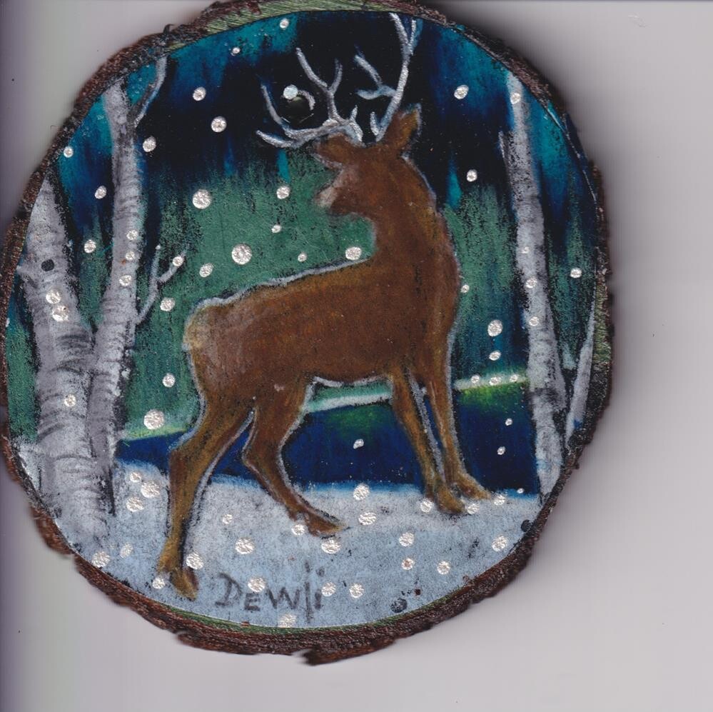 Christmas ornament, 3" diameter, stringed, on wood circle Christmas ornament, 3" diameter, stringed, on wood circle |