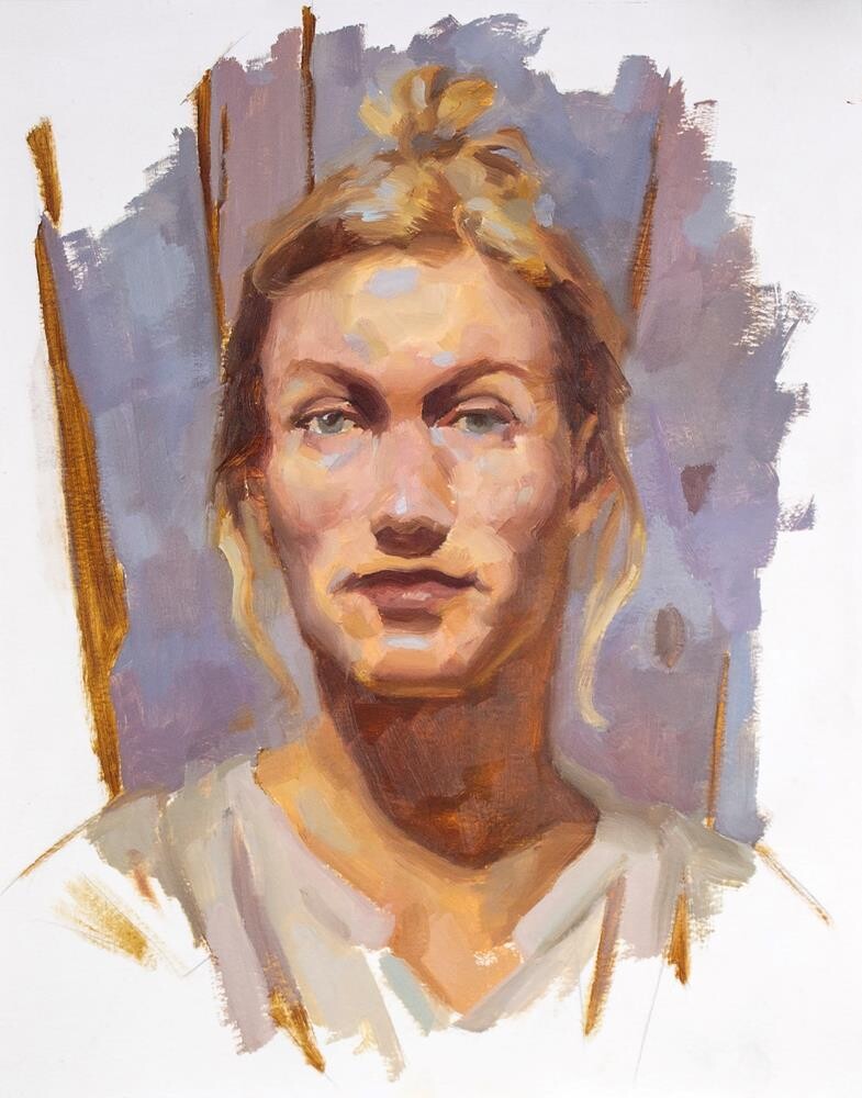 Oil sketch exploring portrait structure through color temperature and simplified planes. Painted with a limited palette, focusing on light, form and suggestion rather than detail. This piece was approached as a direct, intuitive study—allowing the brushwork and color relationships to remain visible and active. Oil on paper. Oil sketch exploring portrait structure through color temperature and simplified planes. Painted with a limited palette, focusing on light, form and suggestion rather than detail. This piece was approached as a direct, intuitive study—allowing the brushwork and color relationships to remain visible and active. Oil on paper. |