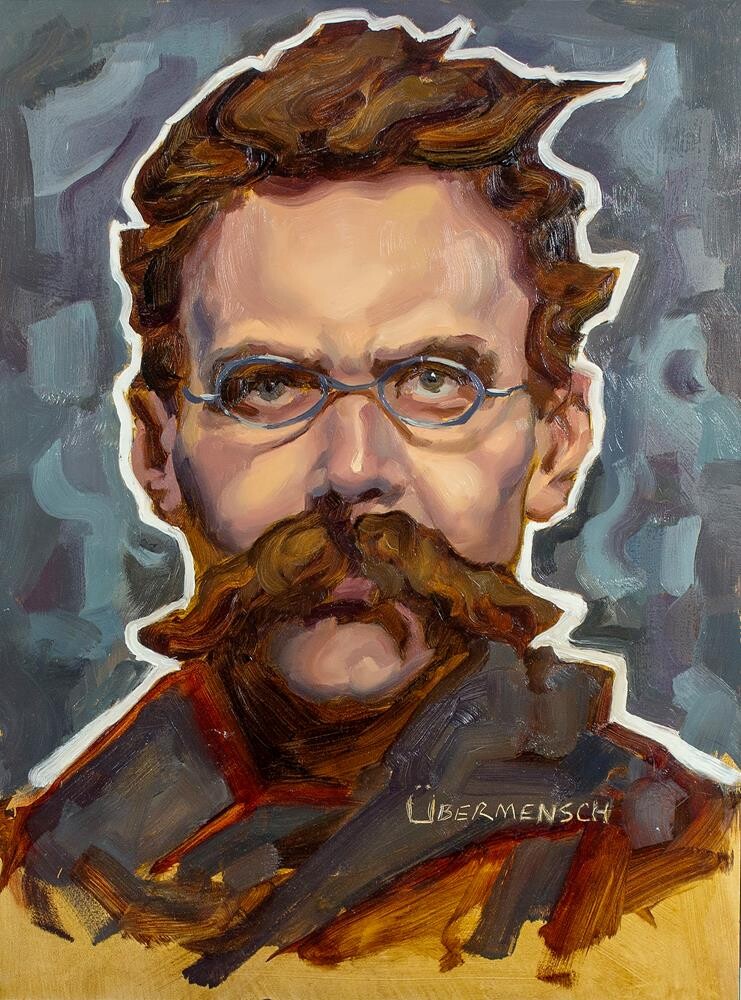 An expressive portrait inspired by Friedrich Nietzsche and the concept of self-overcoming. The word Übermensch is scratched directly into the surface, reinforcing the physical and psychological tension present in the painting. An expressive portrait inspired by Friedrich Nietzsche and the concept of self-overcoming. The word Übermensch is scratched directly into the surface, reinforcing the physical and psychological tension present in the painting. |