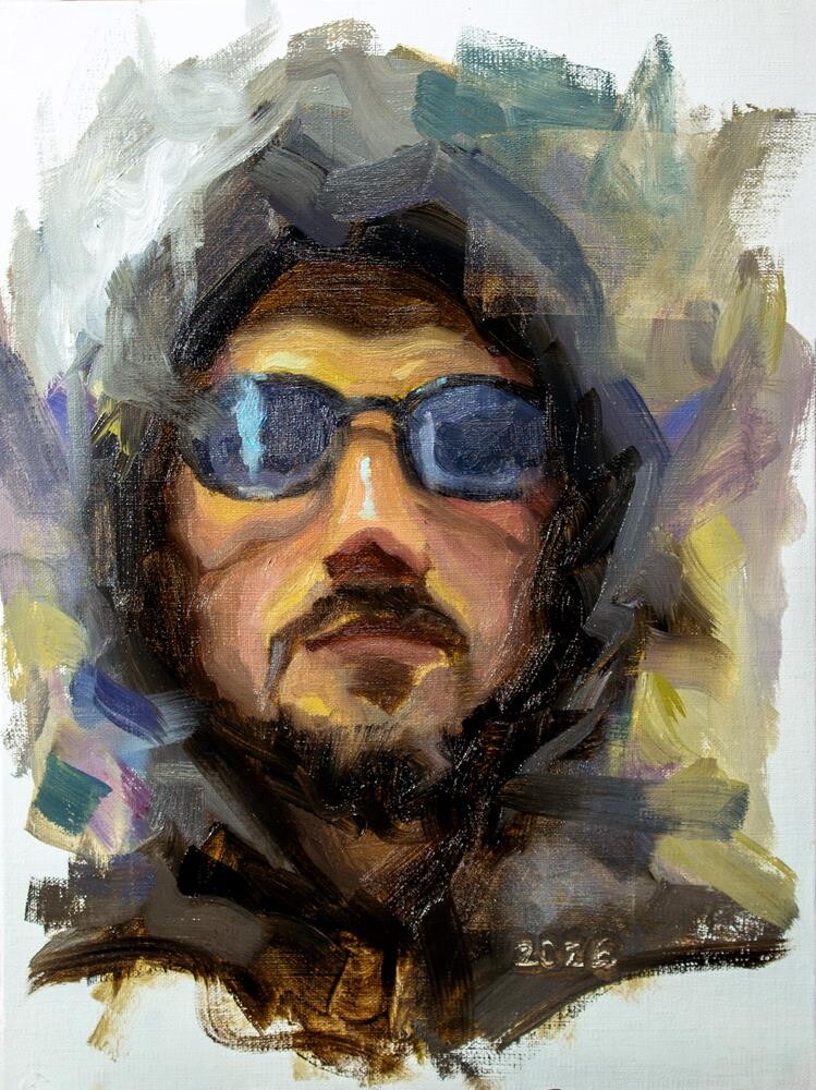This self-portrait was painted as a winter paint sketch—direct, intuitive, and built through layered brushwork rather than tight rendering. I focused on temperature shifts, structure, and mood, allowing the paint to remain visible and active throughout the surface. The goal wasn’t polish, but presence. Warm and cool passages describe form while broken edges and abstract marks hold the figure together without fully resolving it. The result sits somewhere between observation and introspection, capturing a moment rather than a likeness frozen in time. This self-portrait was painted as a winter paint sketch—direct, intuitive, and built through layered brushwork rather than tight rendering. I focused on temperature shifts, structure, and mood, allowing the paint to remain visible and active throughout the surface. The goal wasn’t polish, but presence. Warm and cool passages describe form while broken edges and abstract marks hold the figure together without fully resolving it. The result sits somewhere between observation and introspection, capturing a moment rather than a likeness frozen in time. |