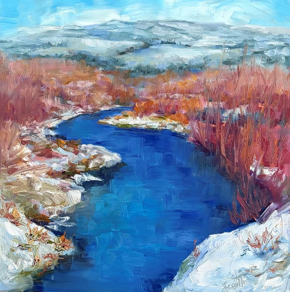 I’m so lucky to have this part of the creek so near to where I live! Observing it in all the seasons, and watching the transitions between them, have given me plenty of reference material for several more paintings. I’ve been waiting for a good bit of snow, and finally ( middle of winter) it happened!