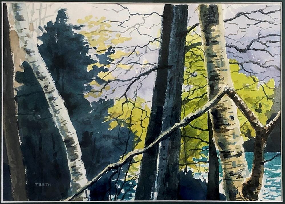 This was a plein air painting I did during a week workshop in Northern Maine just below Mt Katahdin. We stayed in an old hunting camp where the instructor gave a demo or talk at breakfast, then we painting all day to reconvene at dinner and a critique at night. It was cold and rainy all week which presented some problems as I was working in watercolors, but I loved it. This painting was done indoors looking out from a screened porch This was a plein air painting I did during a week workshop in Northern Maine just below Mt Katahdin. We stayed in an old hunting camp where the instructor gave a demo or talk at breakfast, then we painting all day to reconvene at dinner and a critique at night. It was cold and rainy all week which presented some problems as I was working in watercolors, but I loved it. This painting was done indoors looking out from a screened porch |