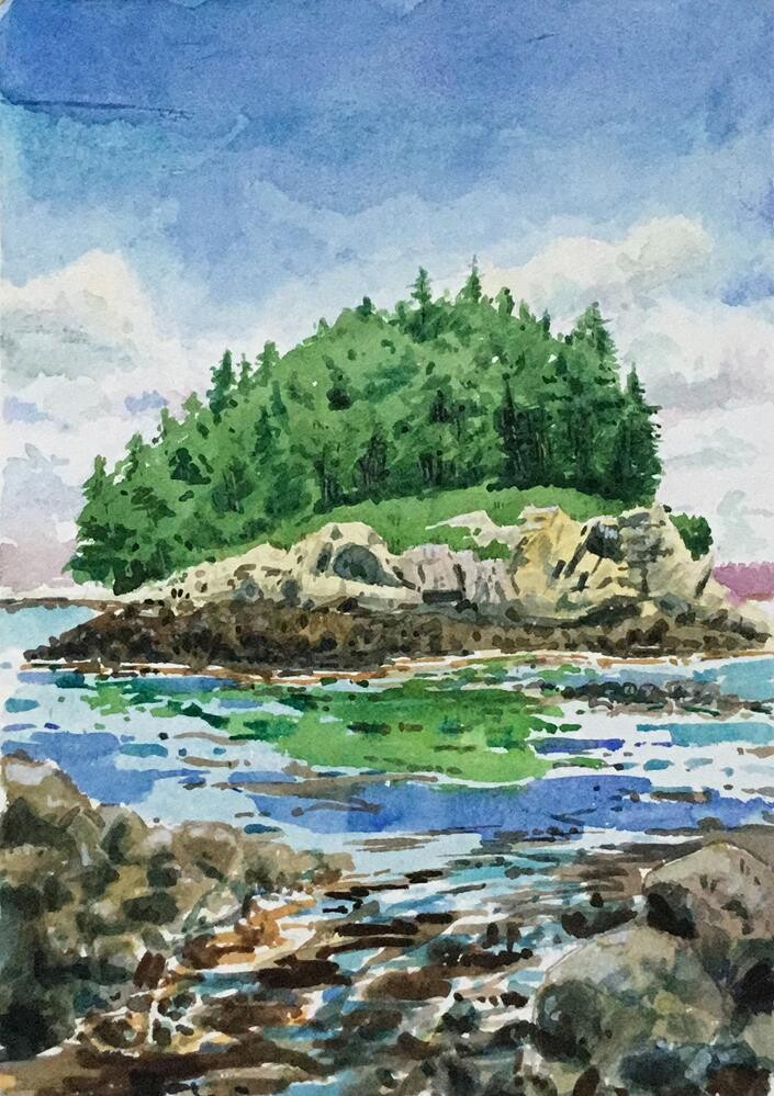 Plein air watercolor of one of the many islands off the coast of Maine. I lived in Maine for 15 years painting up and down the coast. I loved its rugged beauty and the abrupt change in the landscape from rocky coast to deep woods. Plein air watercolor of one of the many islands off the coast of Maine. I lived in Maine for 15 years painting up and down the coast. I loved its rugged beauty and the abrupt change in the landscape from rocky coast to deep woods. |