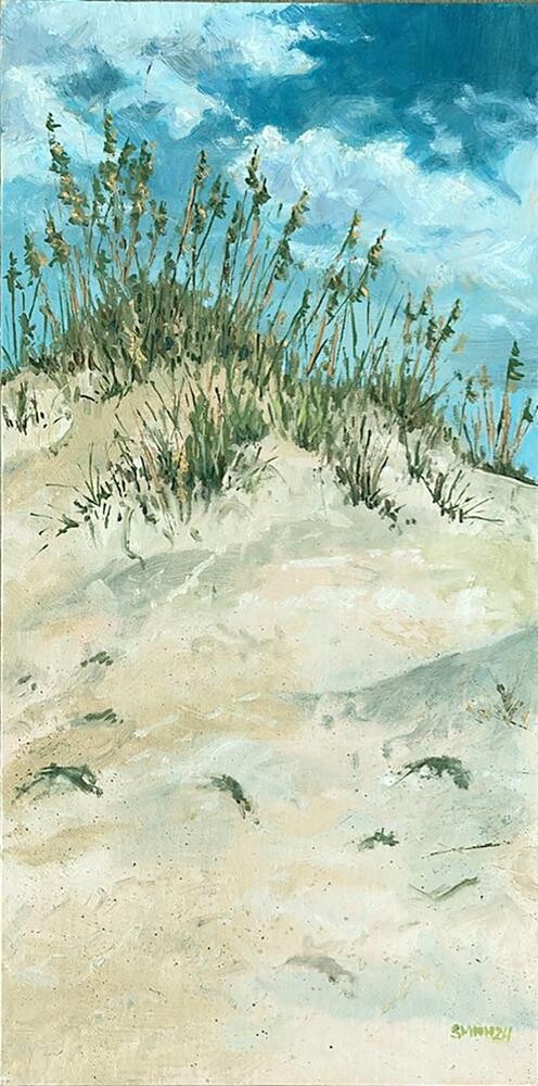 Plein air painting of dunes on Sunset Beach