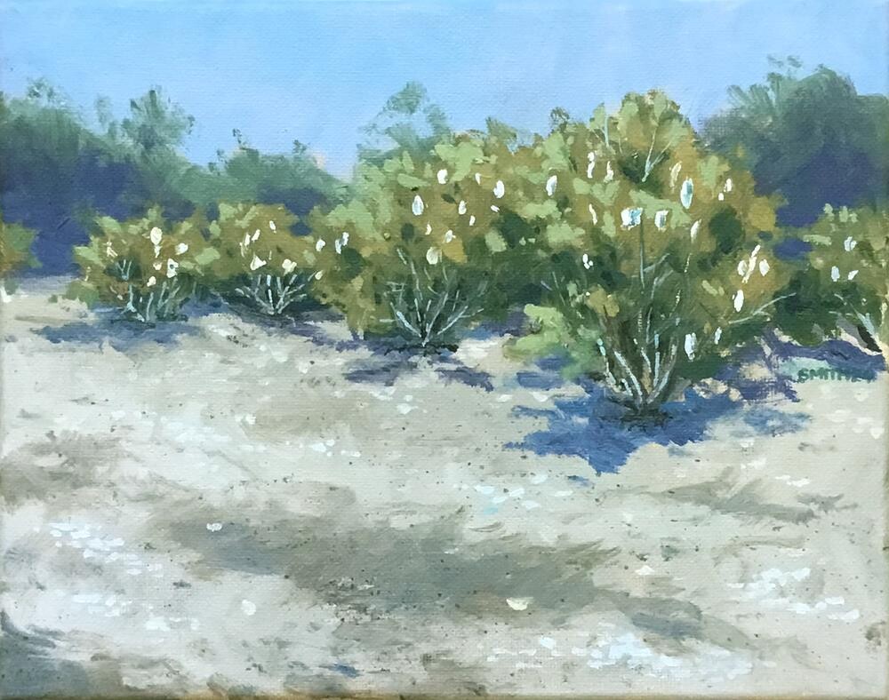 In Vereen Gardens, down along the intercostal, the shoreline is covered with old, bleached oyster shells. People pick them up and hang them from trees and scrubs along the beach and walkways. Its like decorating Christmas trees.