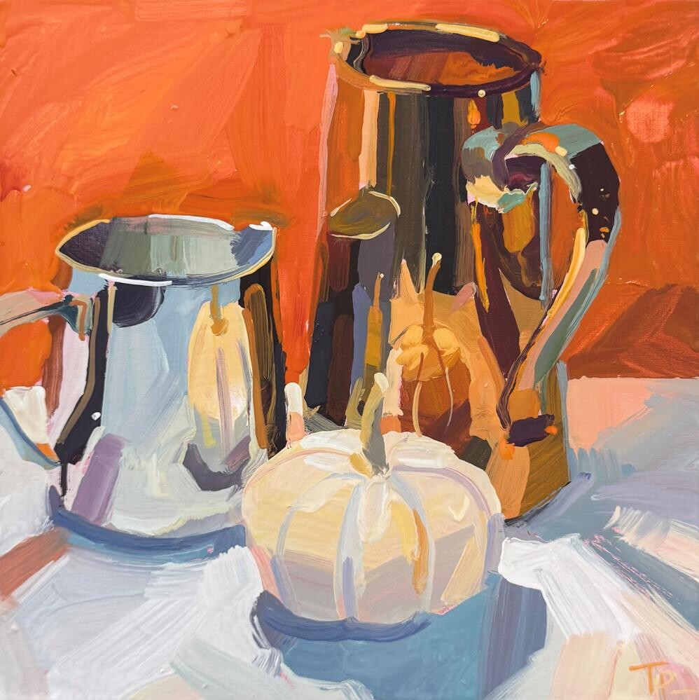 Alright, it's almost October - bring on the pumpkin still lifes. A friend asked me this weekend what my favorite thing to paint is; I still think it is distortion. So I brought out the pitchers again. I think I need a new shiny object to use for distortion though, I'm getting too familiar with these. *frame not included. Alright, it's almost October - bring on the pumpkin still lifes. A friend asked me this weekend what my favorite thing to paint is; I still think it is distortion. So I brought out the pitchers again. I think I need a new shiny object to use for distortion though, I'm getting too familiar with these. *frame not included. |