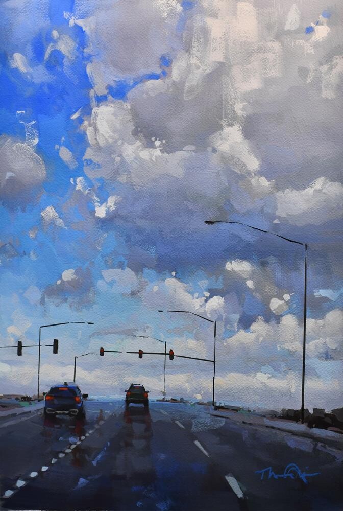 “Road Reflection 2: Yuma AZ” Gouache on Paper, 18.5”x12.5” Professionally Framed by Wonka Framing in SD.