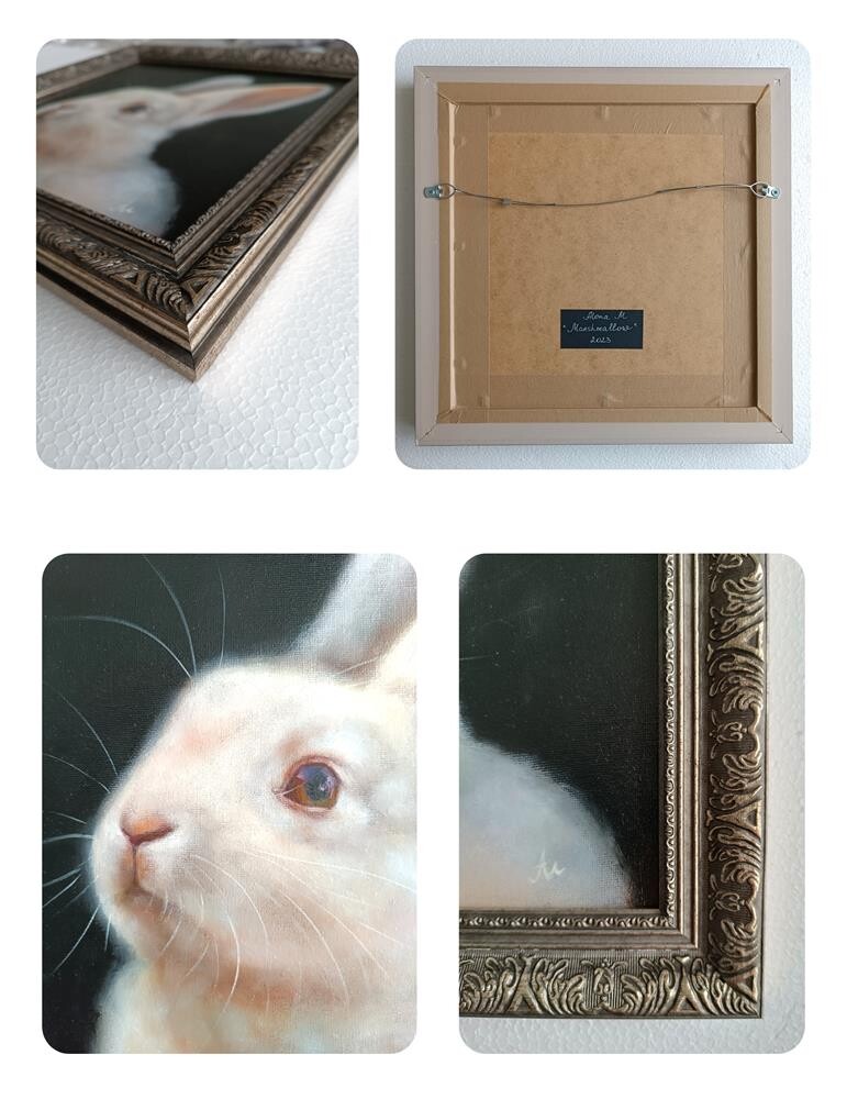 The collection of bunnies and rabbits. An original oil painting by Latvian artist Alona M. The painting is framed. Size with frame is 14.6x14.6in. Ready to hang. Will be packed carefully and safe. The collection of bunnies and rabbits. An original oil painting by Latvian artist Alona M. The painting is framed. Size with frame is 14.6x14.6in. Ready to hang. Will be packed carefully and safe. |